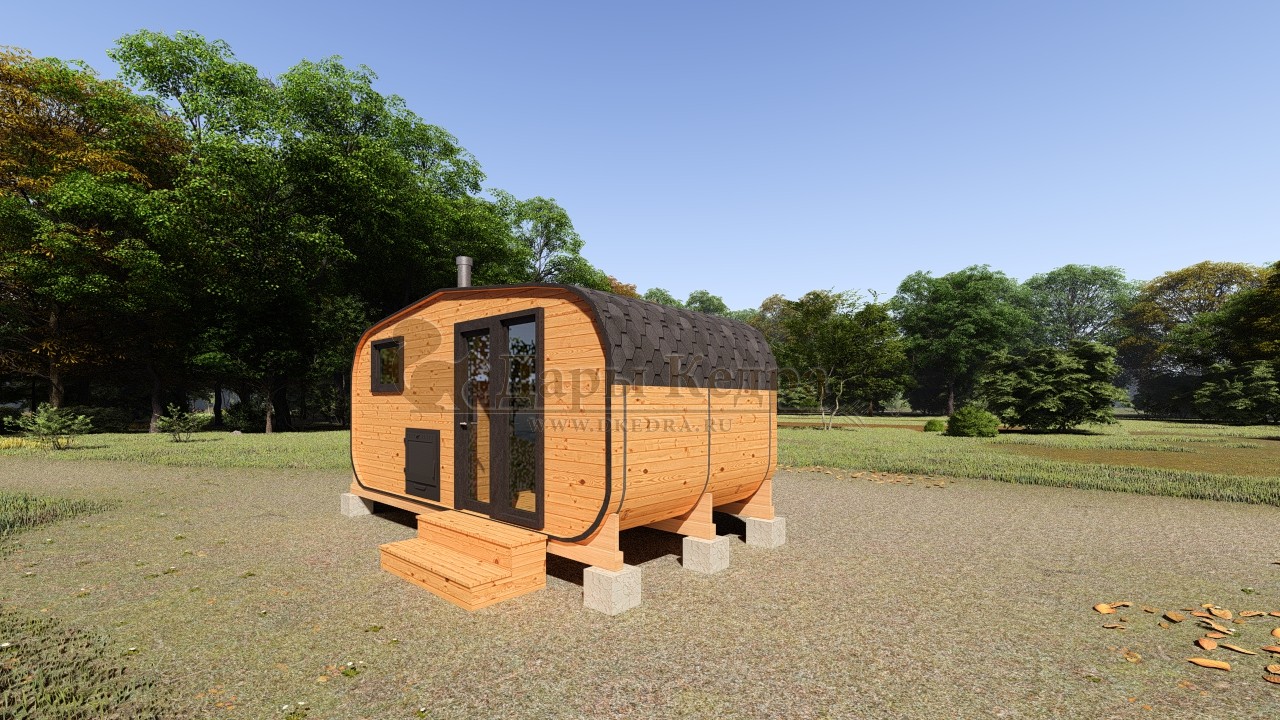 • Баня-бочка круглая из кедра 3 метра Это изделие круглой вытянутой формы с двумя отделениями: раздевалкой и парной. Лавочки из кедра находятся по всей длине бани-бочки с обеих сторон. Печь расположена в парилке около дальней стены. Для удобства пользования в раздевалке установлена вешалка и полочка из кедра. За счет небольшой конструкции баня нагревается не более 30 минут. По вашему желанию баню-бочку можно дополнить печью с внешней загрузкой, благодаря которой весь мусор после топки останется на улице. Круглая баня-бочка не требует полноценный фундамент, поэтому при необходимости ее можно перенести в другое место. Обращаем Ваше внимание, что в стандартную комплектацию бани входят лавки в парной с обеих сторон. Дополнительно можно заказать полок открытого или закрытого типа! Кедр обладает ароматическими свойствами. Он не деформируется и влагоустойчив, при правильном уходе за деревом на нем не развиваются грибки и плесень.