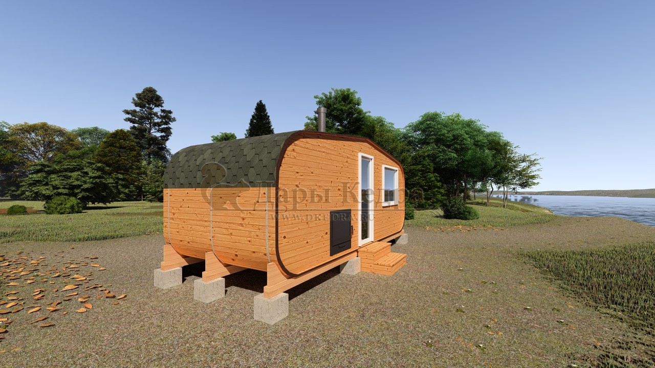 Баня-бочка представляет собой конструкцию в виде бочонка без углов. Такая форма считается оптимальной для равномерного распределения пара по всей внутренней поверхности парной. Таким образом, пар не скапливается в одном месте, а циркулирует по всему объему. Соответственно, круглая (квадратная, овальная) баня экономичная: топится быстро, требует дров мало.
