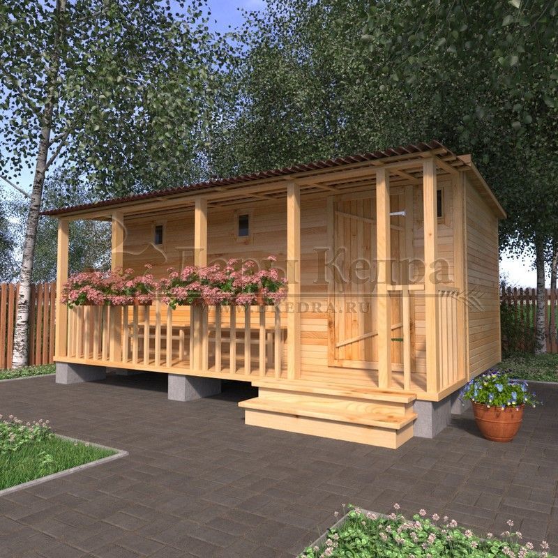 • Каркасно-щитовая баня из кедра «Стандарт» с верандой Это классическая прямоугольная модель бани с тремя отделениями: предбанником, моечной и парилкой. Для удобства пользования предбанник оснащен лавочкой и вешалкой. В моечной находится лавка и полочка из кедра. Парилка оборудована двухуровневым открытым полком и печью. За счет небольших размеров баня нагревается не более 30 минут. На просторной веранде можно оставить вещи или отдохнуть после парения. Каркасно-щитовую баню можно заказать как в готовом, так и в разборном варианте. В разборной модели готовые щиты из кедра быстро собираются в полноценное строение, что также позволяет исключить лишний строительный мусор. Такая баня не требует полноценный фундамент, поэтому при необходимости ее можно перенести в другое место. Обращаем Ваше внимание, что в стандартную комплектацию бани входит полок открытого типа в парной. Дополнительно можно заказать полок закрытого типа или лавку! Древесина кедра насыщена эфирными маслами и фитонцидами, которые активируются при воздействии температур. Таким образом, парение в каркаско-щитовых банях из кедра становится еще полезнее.