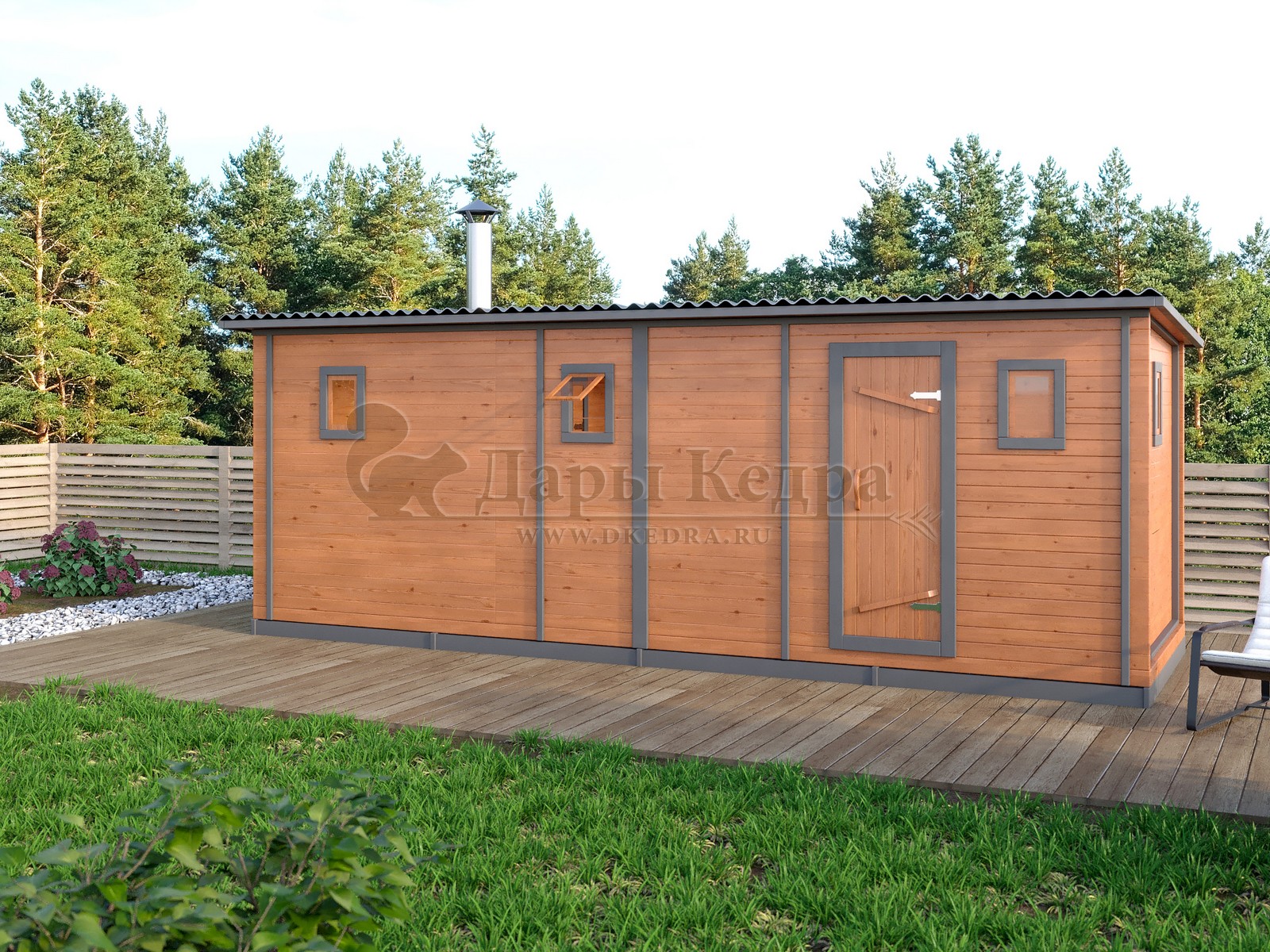 • Каркасная баня «Лофт» из кедра 6х2,2 метра (вариант 2) Шесть метров пространства, гармонично разделенного на зоны отдыха, омовения и, конечно же, парилки, – это каркасная баня в стиле лофт, воплощение мечты о функциональном и стильном месте для релаксации. Здесь индустриальная эстетика с ее любовью к натуральным материалам и открытым пространствам встречается с вековыми традициями банного дела, создавая неповторимую атмосферу. Каркасная баня лофт 6 метров – это не просто постройка, это инвестиция в ваше здоровье и благополучие, а также стильный элемент ландшафтного дизайна, который будет радовать вас и ваших близких долгие годы. Это место, где можно отдохнуть душой и телом, наслаждаясь гармонией природы и индустриальной эстетики.