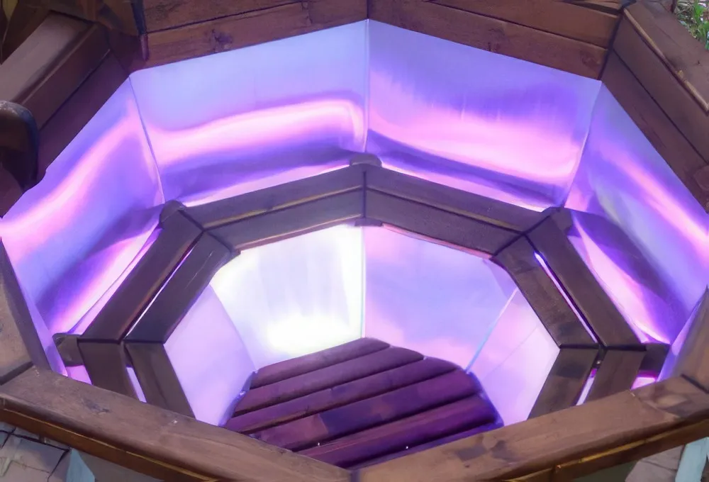 Банный чан с ветрозащитой изготовлен из пищевой стали. Представляет собой большую ёмкость в виде чаши, при нагревании которой можно париться на свежем воздухе. Банный чан установлен на металлическую закрытую подставку, которая служит защитой от ветра и печью одновременно. В комплект такой модели входит дымоход 2 метра. Чан оборудован кедровым бортом, скамейками, подспинниками, трапом для ног и приставной лестницей.