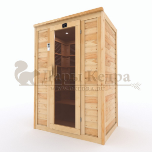 Это специально оборудованная кедровая кабина для прогрева тела человека сухим теплом. Воздух в таких парных не нагревается. Инфракрасные лучи воздействуют на тело, равномерно прогревая мышцы, суставы и органы. Карбоновые излучатели, встроенные в стены кабины, обладают мягким прогревом, что полностью исключает возможность ожога. Работает кабина за счет электричества. Двухместная инфракрасная сауна с карбоновыми излучателями подойдет как для домашнего использования, так и для коммерции.