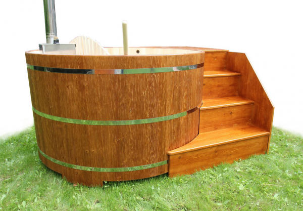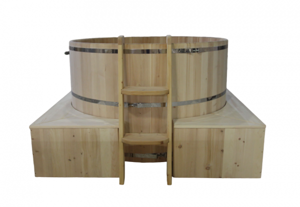 Это уличная баня, которой можно пользоваться круглый год. Купель представляет собой овальную емкость для воды, внутри которой располагаются сиденья из кедра. Нагрев воды происходит за счет встроенной печи, которая находится внутри купели за перегородкой. Рекомендуем приобрести термокрышку и весло для перемешивания воды для ускорения нагрева. Для удобства пользования японская баня фурако оборудована внешней и внутренней лестницей из кедра. В комплектацию этой модели входит совок с длинной ручкой, который позволяет извлекать угли и золу после эксплуатации изделия.