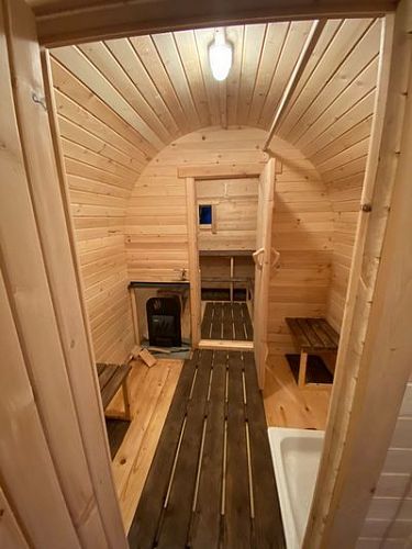 Мы живем в таунхаусе на две семьи. Я, муж и двое детей в одной половине, а брат с женой и тремя ребятишками в другой. Выбирали одну большую баню на всех, чтоб было комфортно размещаться большой компанией. В итоге купили эту баню-буханку на две семьи и не прогадали! Она действительно огромная, удобно париться и там вкусно пахнет деревом! Спасибо!